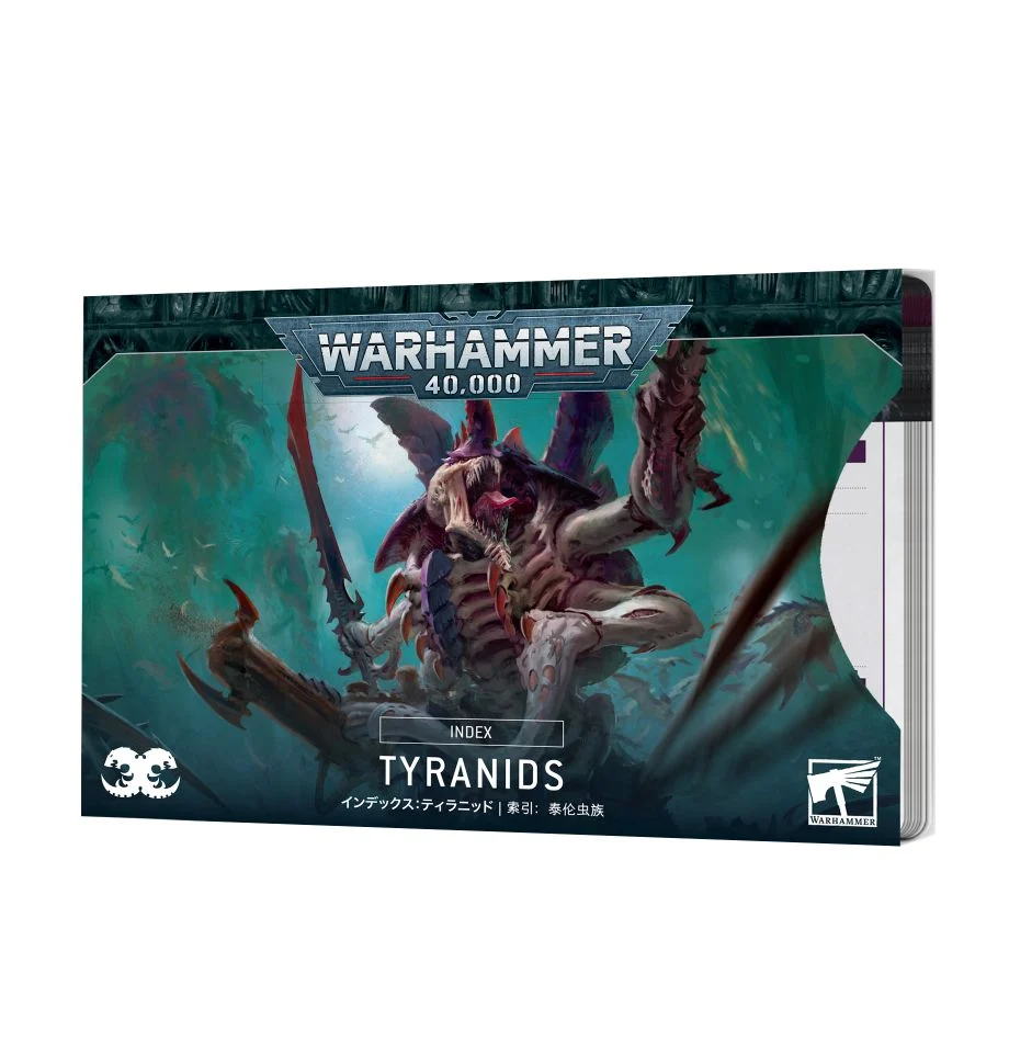 – 3x Tyranids Index Cards, detailing the faction’s army rules and the Invasion Fleet Detachment