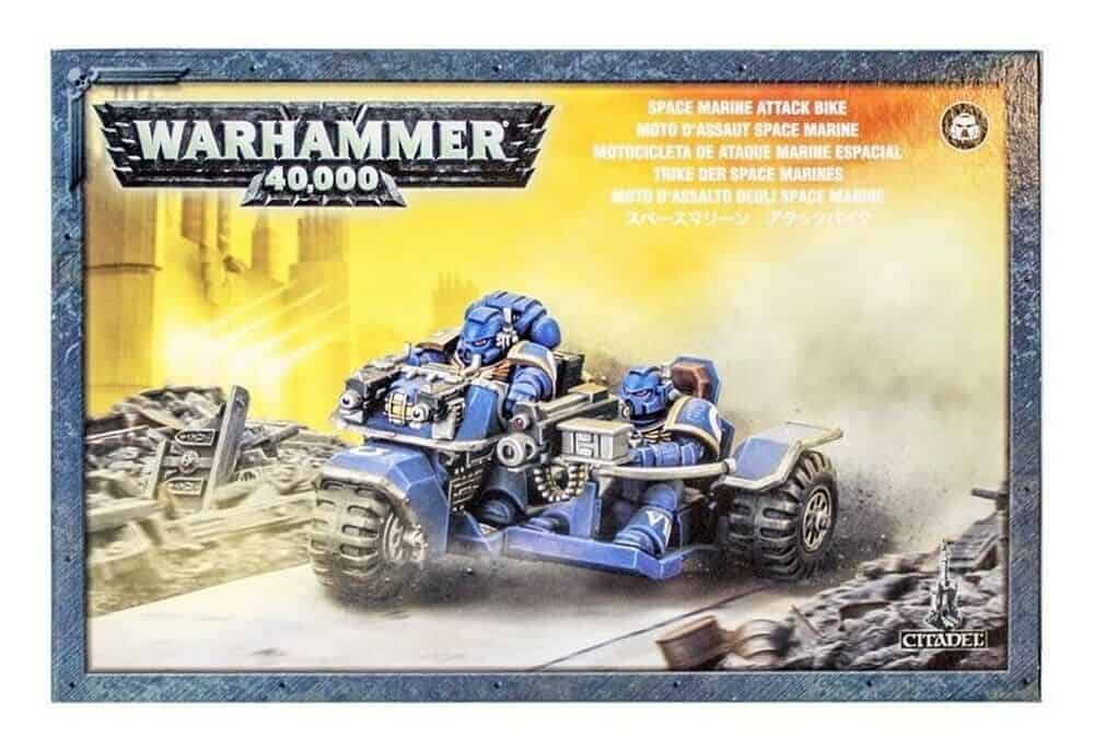 This box set contains one multi-part plastic Attack Bike that can be assembled with either a heavy bolter or multi-melta.