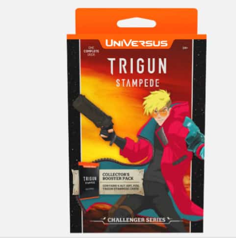 This release represents a new product in the UniVersus line – Challenger Decks! Challenger Series: Trigun Stampede features all-new cards, bringing the fun and excitement of Trigun Stampede to the UniVersus card game!